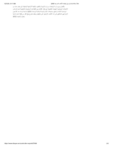 نﯾﺑﻋﻼﻟا ددﻋ ةدﺎﯾزﻟ ﺔﯾﻋﺎﺳﻟا 2031 ﺔﺿﺎﯾرﻠﻟ ﺔﯾﻧطوﻟا ﺔﯾﺟﯾﺗارﺗﺳﻻا تﺎﻓدﮭﺗﺳﻣ ﻖﯾﻘﺣﺗو ﺔﺋﺷﺎﻧﻟا ﺔﯾﺿﺎﯾرﻟا