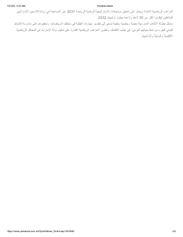نﯾﯾﺗارﺎﻣﻹا نﯾﺑﻋﻼﻟا ةدﺎﯾز ﻲﻓ ﺔﻣھﺎﺳﻣﻟا رﺑﻋ 2031 ﺔﺿﺎﯾرﻠﻟ ﺔﯾﻧطوﻟا ﺔﯾﺟﯾﺗارﺗﺳﻻا تﺎﻓدﮭﺗﺳﻣ ﻖﯾﻘﺣﺗ ﻰﻠﻋ لﻣﻌﯾو ﺔﺋﺷﺎﻧﻟا ﺔﯾﺿﺎﯾرﻟا بھاوﻣﻟا