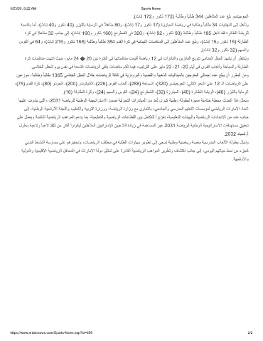 نﯾﻋزوﻣ ،ﺔﺑﻟﺎطو ً ﺎﺑﻟﺎط 1365 ﻲﻣﺎﺗﺧﻟا لﻔﺣﻟا لﻼﺧ تﺎﺿﺎﯾرﻟا ﺔﻓﺎﻛ ﻲﻓ ﺔﯾزﻧورﺑﻟاو ﺔﯾﺿﻔﻟاو ﺔﯾﺑھذﻟا تﺎﯾﻟادﯾﻣﻟﺎﺑ نﯾﺟوﺗﻣﻟا ﻲﻟﺎﻣﺟإ ددﻋ ﻎﻠﺑﯾ نأ ررﻘﻣﻟا نﻣو