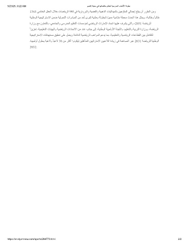ةرازو ﻊﻣ نوﺎﻌﺘﻟﺎﺑ ،ﻲﻌﻣﺎﺠﻟاو ﻲﺳرﺪﻤﻟا ﻢﯿﻠﻌﺘﻟا تﺎﺴﺳﺆﻤﻟ ﻲﺿﺎﯾﺮﻟا تارﺎﻣﻹا دﺎﺤﺗا ﺎﮭﯿﻠﻋ فﺮﺸﯾ ﻲﺘﻟاو ،2031 ﺔﺿﺎﯾﺮﻠﻟ
