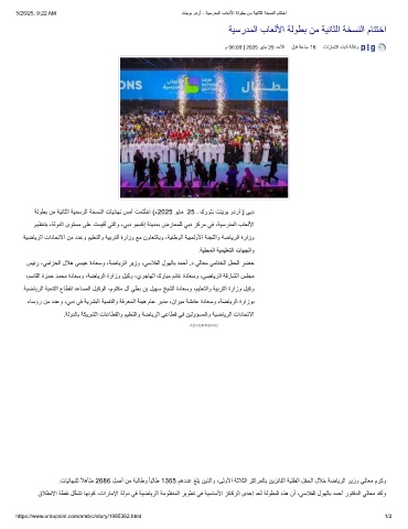 ﺔﻟوطﺑ نﻣ ﺔﯾﻧﺎﺛﻟا ﺔﯾﻣﺳرﻟا ﺔﺧﺳﻧﻟا تﺎﯾﺋﺎﮭﻧ سﻣأ تﻣﺗُﺗﺧا (ء2025 وﯾﺎﻣ 25 ۔ كروﺗﻧ تﻧﯾوﺑ ودرأ ) ﻲﺑد
