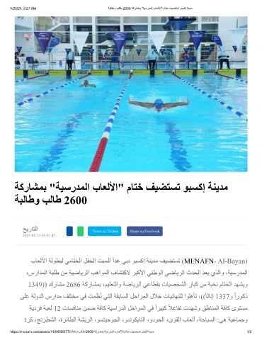 5/26/25, 9:27 AM ﺔﺑﻟﺎطو بﻟﺎط 2600 ﺔﻛرﺎﺷﻣﺑ "ﺔﯾﺳردﻣﻟا بﺎﻌﻟﻷا" مﺎﺗﺧ فﯾﺿﺗﺳﺗ وﺑﺳﻛإ ﺔﻧﯾدﻣ