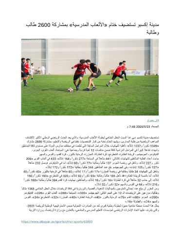 فاشتكلا ربكلأا ينطولا يضايرلا ثدحلا دعي يذلاو ،ةيسردملا باعللأا ةلوطبل يماتخلا لفحلا تبسلا ًادغ يبد وبسكإ ةنيدم فيضتست