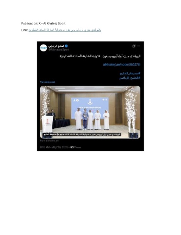 Publication: X – Al Khaleej Sport Link: جنرطشلا ةذتاسلأ ةقراشلا ةيلود« ـب زوفي يبوروأ لوأ يريج يدنلوهلا»