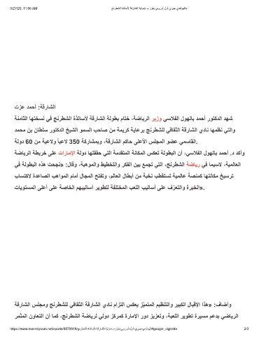 رﻣﺛﻣﻟا نوﺎﻌﺗﻟا نأ ﺎﻣﻛ ،ﺞﻧرطﺷﻟا ﺔﺿﺎﯾرﻟ ﻲﻟود زﻛرﻣﻛ ةرﺎﻣﻹا رود زﯾزﻌﺗو ،ﺔﺑﻌﻠﻟا رﯾوطﺗ ةرﯾﺳﻣ مﻋدﺑ ﻲﺿﺎﯾرﻟا