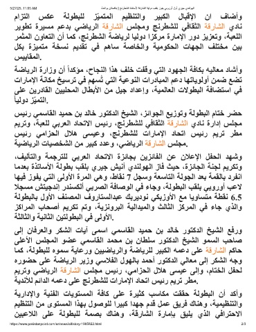 ﺮﻤﺜﻤﻟا نوﺎﻌﺘﻟا نأ ﺎﻤﻛ ،ﺞﻧﺮﻄﺸﻟا ﺔﺿﺎﯾﺮﻟ ﺎﯿﻟود اﺰﻛﺮﻣ ةرﺎﻣﻹا رود ﺰﯾﺰﻌﺗو ،ﺔﺒﻌﻠﻟا