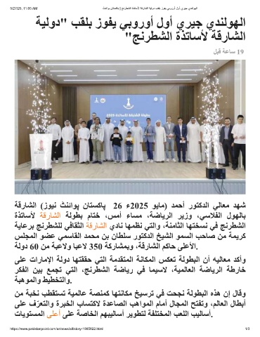 5/27/25, 11:05 AM ٹﻧﺋاوﺑ نﺎﺗﺳﮐﺎﺑ | ﺞﻧرطﺷﻟا ةذﺗﺎﺳﻷ ﺔﻗرﺎﺷﻟا ﺔﯾﻟود بﻘﻠﺑ زوﻔﯾ ﻲﺑوروأ لوأ يرﯾﺟ يدﻧﻟوﮭﻟا