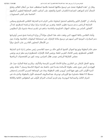 نأ ﺎﻤﻛ ،ﺞﻧﺮﻄﺸﻟا ﺔﺿﺎﻳﺮﻟ ﺎﻴﻟود اﺰﻛﺮﻣ ةرﺎﻣإلا رود ﺰﻳﺰﻌﺗو ،ﺔﺒﻌﻠﻟا ﺮﻳﻮﻄﺗ ةﺮﻴﺴﻣ ﻢﻋﺪﺑ يضﺎﻳﺮﻟا ﺔﻗرﺎﺸﻟا