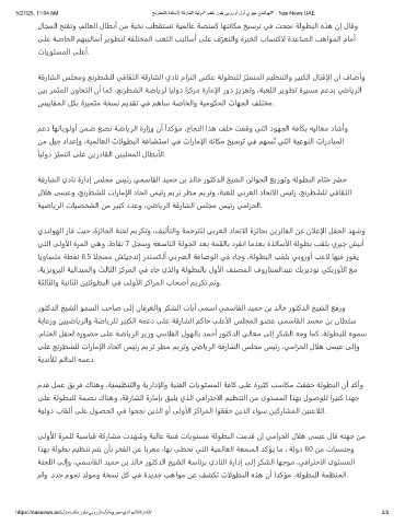 ﺔﻳﺎﻋرو ﻦﻴﻴﺿﺎﻳﺮﻟاو ﺔﺿﺎﻳﺮﻠﻟ ﺮﻴﺒﻜﻟا ﻪﻤﻋد ﻰﻠﻋ ﺔﻗرﺎﺸﻟا ﻢﻛﺎﺣ ﻰﻠﻋألا ﺲﻠﺠﻤﻟا ﻮﻀﻋ ﻲﻤﺳﺎﻘﻟا ﺪﻤﺤﻣ ﻦﺑ نﺎﻄﻠﺳ