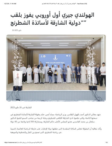 5/27/25, 11:04 AM ﺞﻧرطﺷﻟا ةذﺗﺎﺳﻷ ﺔﻗرﺎﺷﻟا ﺔﯾﻟود" بﻘﻠﺑ زوﻔﯾ ﻲﺑوروأ لوأ يرﯾﺟ يدﻧﻟوﮭﻟا" - Nas News UAE