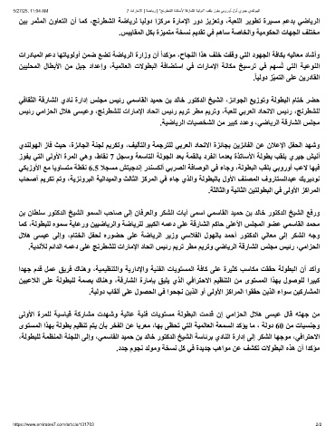 ﻦﯿﺑ ﺮﻤﺜﻤﻟا نوﺎﻌﺘﻟا نأ ﺎﻤﻛ ،ﺞﻧﺮﻄﺸﻟا ﺔﺿﺎﯾﺮﻟ ﺎﯿﻟود اﺰﻛﺮﻣ ةرﺎﻣﻹا رود ﺰﯾﺰﻌﺗو ،ﺔﺒﻌﻠﻟا ﺮﯾﻮﻄﺗ ةﺮﯿﺴﻣ ﻢﻋﺪﺑ ﻲﺿﺎﯾﺮﻟا