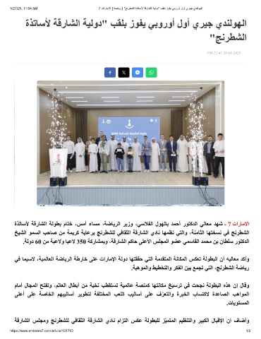 5/27/25, 11:04 AM 7 تارﺎﻣﻻا | ﺔﺿﺎﯾر | "ﺞﻧرطﺷﻟا ةذﺗﺎﺳﻷ ﺔﻗرﺎﺷﻟا ﺔﯾﻟود" بﻘﻠﺑ زوﻔﯾ ﻲﺑوروأ لوأ يرﯾﺟ يدﻧﻟوﮭﻟا