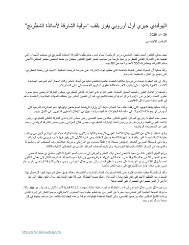 ددعو ،يضايرلا ةقراشلا سلجم سيئر يمازحلا للاه ىسيعو ،جنرطشلل تاراملإا داحتا سيئر ميرت رطم ميرتو ،ةبعلل يبرعلا داحتلاا