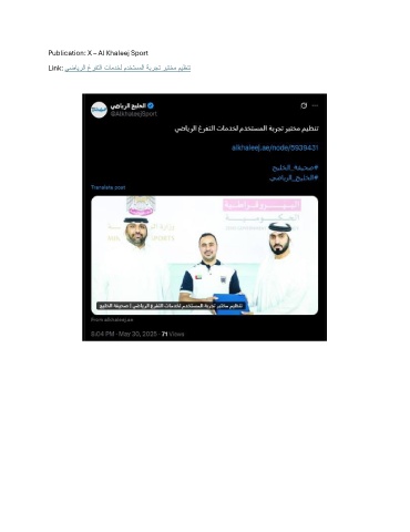 Publication: X – Al Khaleej Sport Link: يضايرلا غرفتلا تامدخل مدختسملا ةبرجت ربتخم ميظنت