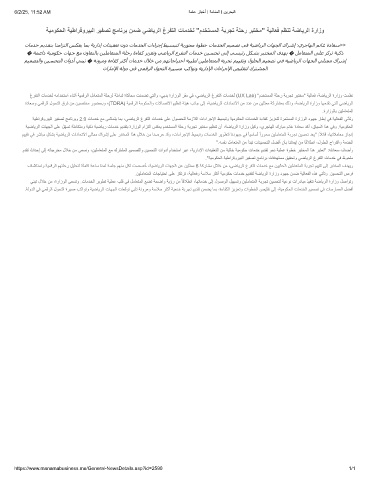 ﺔﯾﺿﺎﯾرﻟا تﺎﮭﺟﻟا ﻰﻠﻋ لّﮭﺳﺗ ﺔﻠﻣﺎﻛﺗﻣو ﺔﯾﻛذ ﺔﯾﺿﺎﯾر تﺎﻣدﺧ مﯾدﻘﺗﺑ ةرازوﻟا مازﺗﻟا سﻛﻌﯾ مدﺧﺗﺳﻣﻟا ﺔﻠﺣر ﺔﺑرﺟﺗ رﺑﺗﺧﻣ مﯾظﻧﺗ نأ ،ﺔﺿﺎﯾرﻟا ةرازو لﯾﻛو ،يرﺟﺎﮭﻟا كرﺎﺑﻣ مﻧﺎﻏ ةدﺎﻌﺳ دﻛأ ،قﺎﯾﺳﻟا اذھ ﻲﻓو .ﺔﯾﻣوﻛﺣﻟا