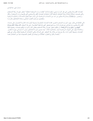6/2/25, 11:47 AM رﺎﺑﺧﻸﻟ رﺎﺑﺳﻣ – ”مدﺧﺗﺳﻣﻟا ﺔﺑرﺟﺗ ﺔﻠﺣر رﺑﺗﺧﻣ“ ﺔﯾﻟﺎﻌﻓ مظﻧﺗ ﺔﺿﺎﯾرﻟا ةرازو
