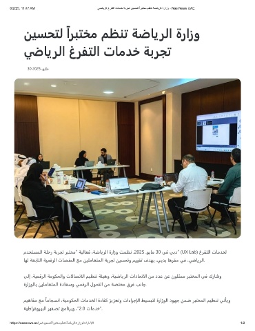 مﺪﺨﺘﺴﻤﻟا ﺔﻠﺣر ﺔﺑﺮﺠﺗ ﺮﺒﺘﺨﻣ“ ﺔﻴﻟﺎﻌﻓ ،ﺔﺿﺎﻳﺮﻟا ةرازو ﺖﻤﻈﻧ .2025 .ﻮﻳﺎﻣ 30 ﻲﻓ ﻲﺑد” (UX Lab) غﺮﻔﺘﻟا تﺎﻣﺪﺨﻟ