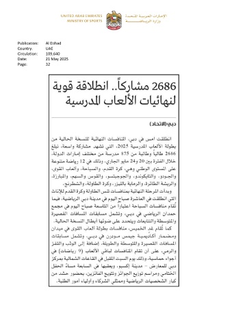 Publication: Al Etihad Country: UAE Circulation: 109,640 Date: 21 May 2025 Page: 32