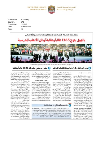 Publication: Al Khaleej Country: UAE Circulation: 121,141 Date: 26 May 2025 Page: 20
