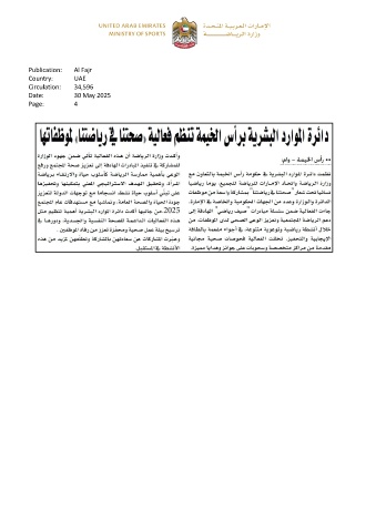 Publication: Al Fajr Country: UAE Circulation: 34,596 Date: 30 May 2025 Page: 4