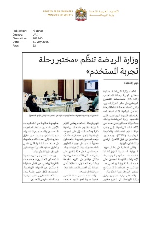 Publication: Al Etihad Country: UAE Circulation: 109,640 Date: 31 May 2025 Page: 23
