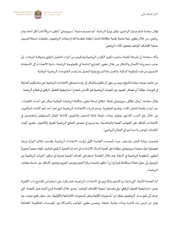 ٍ دﺎﻧو دﺎﺤﺗا ﻞ�ﻟ ﺎﻴﻨﻘﺗ ﺎ ��ﺮﺷ نﻮ�ﺘﻟ "يﺎﻔﻴﺗرﻮﺒﺳ" ﺔﺼﻨﻣ ﻢﻴﻤﺼﺗ ﻢﺗ" : ﺔﺿﺎ�ﺮﻟا ةرازو ﻞﻴﻛو ،يﺮﺟﺎهﻟا كرﺎﺒﻣ ﻢﻧﺎﻏ ة دﺎﻌﺳ لﺎﻗ و