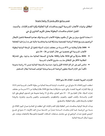 2025 مﺎﻌﻟ ﺔﻴﺳرﺪﳌا بﺎﻌﻟﻷا ﺔﻟﻮﻄﺑ ﻦﻣ ﺔﻴﻟﺎح �ا ﺔخ�نﻠ ﻟ ﺔ ﻴﺋﺎ�� ﻟا تﺎﺴﻓﺎﻨ ﳌا ،ﻲ�د �� ( ﻮﻳﺎﻣ 20 ءﺎﺛﻼﺜ ﻟا) مﻮﻴﻟا ﺖﻘﻠﻄﻧا