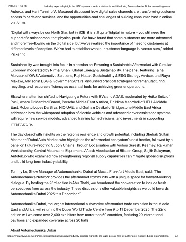 10/10/25, 1:51 PM Industry experts highlight the UAE’s pivotal role in sustainable mobility during Automechanika Dubai networking event