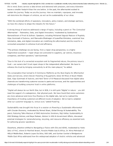 10/10/25, 1:52 PM Industry experts highlight the UAE’s pivotal role in sustainable mobility during Automechanika Dubai networking event - Middle Ea…