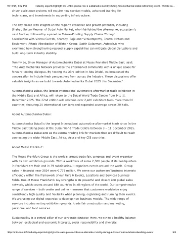10/10/25, 1:52 PM Industry experts highlight the UAE’s pivotal role in sustainable mobility during Automechanika Dubai networking event - Middle Ea…