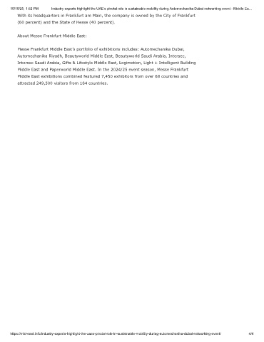 10/10/25, 1:52 PM Industry experts highlight the UAE’s pivotal role in sustainable mobility during Automechanika Dubai networking event - Middle Ea…