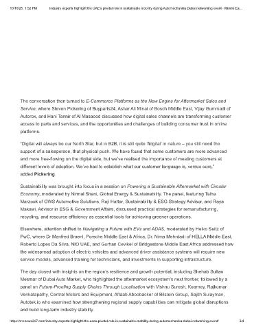10/10/25, 1:52 PM Industry experts highlight the UAE's pivotal role in sustainable mobility during Automechanika Dubai networking event - Middle Ea…