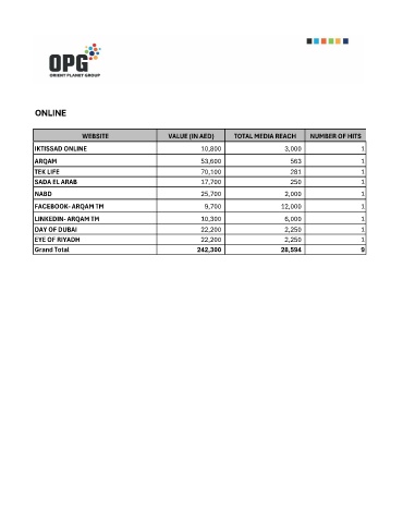 WEBSITE VALUE (IN AED) TOTAL MEDIA REACH NUMBER OF HITS