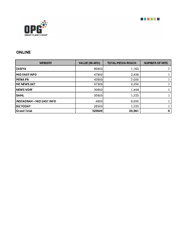 WEBSITE VALUE (IN AED) TOTAL MEDIA REACH NUMBER OF HITS
