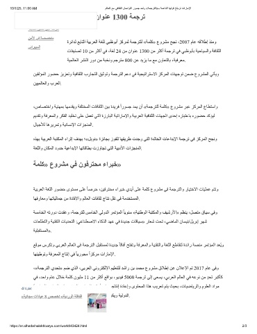 ،«ﺔﻤﺟﺮﺘﻟا يﺪﺤﺗ» ﻢﺿ يﺬﻟا ،ﻲﺑﺮﻌﻟا ﻲﻧوﺮﺘﻜﻟﻹا ﻢﯿﻠﻌﺘﻠﻟ ﺪﺷار ﻦﺑ ﺪﻤﺤﻣ عوﺮﺸﻣ قﻼطإ ﻦﻋ نﻼﻋﻹا ﻢﺗ 2017 مﺎﻋ ﻲﻓو