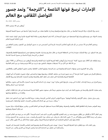 10/1/25, 10:58 AM مﻟﺎﻌﻟا ﻊﻣ ﻲﻓﺎﻘﺛﻟا لﺻاوﺗﻟا روﺳﺟ دﻣﺗو "ﺔﻣﺟرﺗﻟا"ـﺑ ﺔﻣﻋﺎﻧﻟا ﺎﮭﺗوﻗ ﺦﺳرﺗ تارﺎﻣﻹا - Nas News UAE