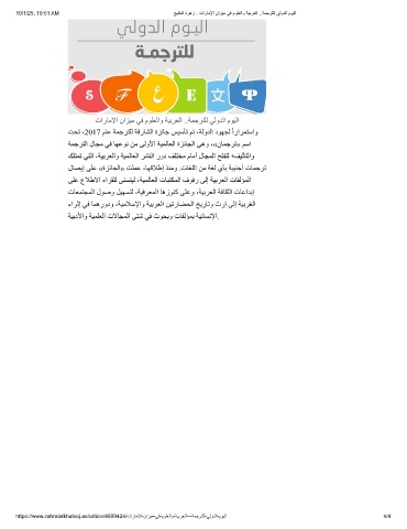 تارﺎﻣﻹا ناﺰﯿﻣ ﻲﻓ مﻮﻠﻌﻟاو ﺔﯿﺑﺮﻌﻟا ..ﺔﻤﺟﺮﺘﻠﻟ ﻲﻟوﺪﻟا مﻮﯿﻟا