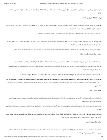 زﯾزﻌﺗو ﺔﯾﻧﺎﺳﻧﻹا ةرﺎﺿﺣﻟا رود لﯾﻌﻔﺗ ﻲﻓ ﺔﻣھﺎﺳﻣﻟاو ،ﺔﯾﺑرﻌﻟا ﻰﻟإ ﺔﻣﺟرﺗﻣﻟا لﺎﻣﻋﻸﻟ ﻲﻣﻟﺎﻌﻟا رﺷﻧﻟا ﻊﯾﺟﺷﺗو ﺔﯾﺑدﻷا ﺔﻣﺟرﺗﻟا زﯾزﻌﺗ فدﮭﺑ ،«نﺎﻣﺟرﺗ» ﺔﻣﺟرﺗﻠﻟ ﺔﻗرﺎﺷﻟا ةزﺋﺎﺟ قﻼطإ ىرﺟ ،ﮫﺗاذ مﺎﻌﻟا ﻲﻓو