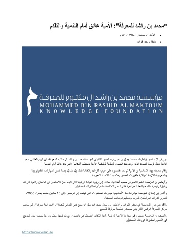 ةيجولونكتلا تاراهملا صقن ًاضيأ لمشت لب ،طقف ةباتكلاو ةءارقلا بايغ ىلع ةرصتقم دعت مل ةيملأا نإ ةبسانملا هذهب هتداعس لاقو