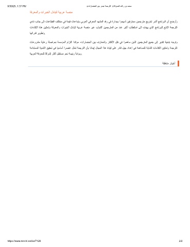 9/30/25, 1:37 PM «تارﺎﺿﺣﻟا نﯾﺑ رﺳﺟ ﺔﻣﺟرﺗﻟا :«ﺔﻓرﻌﻣﻠﻟ دﺷار نﺑ دﻣﺣﻣ