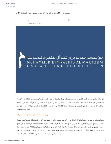 9/30/25, 1:37 PM «تارﺎﺿﺣﻟا نﯾﺑ رﺳﺟ ﺔﻣﺟرﺗﻟا :«ﺔﻓرﻌﻣﻠﻟ دﺷار نﺑ دﻣﺣﻣ