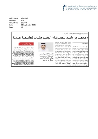 Publication: Al Etihad Country: UAE Circulation: 109,640 Date: 08 September 2025 Page: 16