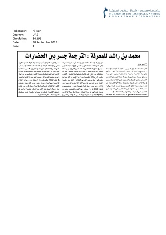 Publication: Al Fajr Country: UAE Circulation: 34,596 Date: 30 September 2025 Page: 4