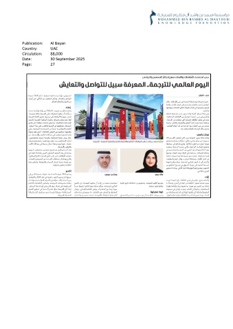 Publication: Al Bayan Country: UAE Circulation: 88,000 Date: 30 September 2025 Page: 27