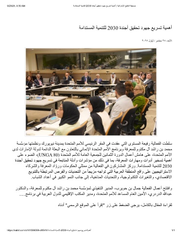 9/29/25, 9:30 AM ﺔﻣادﺗﺳﻣﻟا ﺔﯾﻣﻧﺗﻠﻟ 2030 ةدﻧﺟأ ﻖﯾﻘﺣﺗ دوﮭﺟ ﻊﯾرﺳﺗ ﺔﯾﻣھأ | ﺔﯾﺗارﺎﻣﻹا ﺞﯾﻠﺧﻟا ﺔﻔﯾﺣﺻ