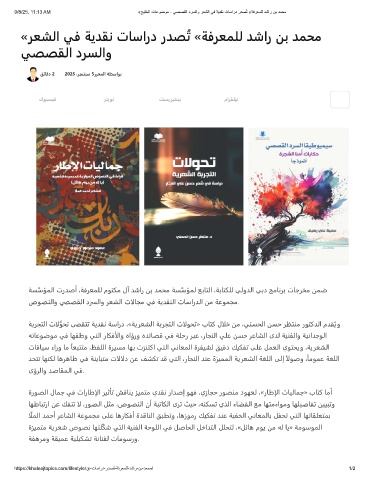9/8/25, 11:13 AM «ﺞﯾﻠﺧﻟا تﺎﻋوﺿوﻣ - ﻲﺻﺻﻘﻟا درﺳﻟاو رﻌﺷﻟا ﻲﻓ ﺔﯾدﻘﻧ تﺎﺳارد ردﺻُﺗ «ﺔﻓرﻌﻣﻠﻟ دﺷار نﺑ دﻣﺣﻣ