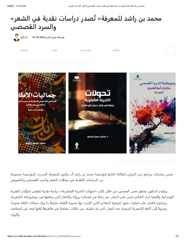 9/8/25, 11:13 AM «موﯾﻟا تارﺎﻣﻹا رﺎﺑﺧأ | ﻲﺻﺻﻘﻟا درﺳﻟاو رﻌﺷﻟا ﻲﻓ ﺔﯾدﻘﻧ تﺎﺳارد ردﺻُﺗ «ﺔﻓرﻌﻣﻠﻟ دﺷار نﺑ دﻣﺣﻣ