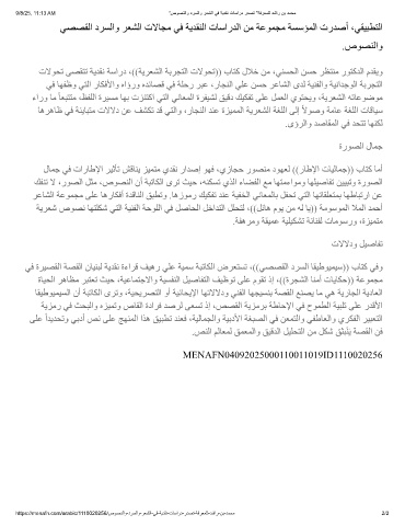 9/8/25, 11:13 AM "صوﺻﻧﻟاو درﺳﻟاو رﻌﺷﻟا ﻲﻓ ﺔﯾدﻘﻧ تﺎﺳارد ردﺻﺗ "ﺔﻓرﻌﻣﻠﻟ دﺷار نﺑ دﻣﺣﻣ
