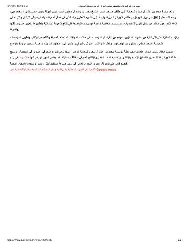 ﻲﻓ عادﺑﻹاو رﺎﻛﺗﺑﻻا ﻰﻟإ مھزﯾﻔﺣﺗو ،ﺔﻓرﻌﻣﻟا لﺎﺟﻣ ﻲﻓ نﯾﻠﻣﺎﻌﻟاو نﯾﯾﻧﻌﻣﻟا ﻊﯾﺟﺷﺗ ﻰﻟإ فدﮭﺗو ،ﺔﯾﺑرﻌﻟا زﺋاوﺟﻟا ىدﺗﻧﻣ ﻲﻓ زﺋاوﺟﻟا زرﺑأ نﻣ ،2015 مﺎﻋ ،ﷲ هﺎﻋر