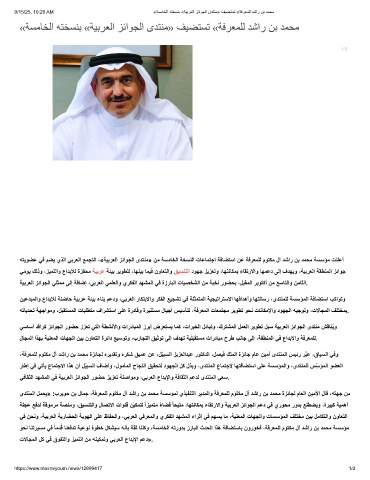 9/15/25, 10:20 AM «ﺔﺳﻣﺎﺧﻟا ﮫﺗﺧﺳﻧﺑ «ﺔﯾﺑرﻌﻟا زﺋاوﺟﻟا ىدﺗﻧﻣ» فﯾﺿﺗﺳﺗ «ﺔﻓرﻌﻣﻠﻟ دﺷار نﺑ دﻣﺣﻣ
